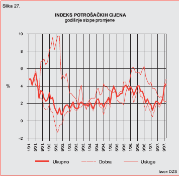 Druga zamjerka je možda malo subtilnija od prve i nadograđuje ju. Povjerenstvo je osnovano kako bi se ustvrdilo koje cijene su išle gore najviše i pridonjele povećanju inflacije najviše. Vlada, partneri ili javnost su mislili da će to biti komunalne usluge i to im je bio prvi izbor. Prstom su upirali u gradove i njihovo povećanje komunalnih usluga, a Sanader je branio Agrokoru čast. Sad je odjednom obrnuto. “Fascinantno.” Treba pogledati dugoročni graf indeksa potrošačkih cijena (IPC) opet iz HNBovog Biltena i vidjeti da je utjecaj promjene cijena usluga u IPC puno manji od utjecaja promjene cijena dobara. IPC ponajviše ovisi o promjeni cijene dobara, kao što vidimo za 2001. i 2002. godinu kad su cijene usluga rasle između 6 i 8% neko vrijeme, a ukupni IPC je padao zbog pada cijena dobara. Ili pak u prošloj godini kad je stopa rasta cijena usluga sa 2.8% u Srpnju pala na 2.3% u Listopadu, a u isto vrijeme je ukupni IPC porastao jer je stopa rasta cijena dobara sa 1.9% u Srpnju došla na 4.8% u Listopadu. Vlada je zbog meni nepoznatog razloga očekivala da će upravo cijene usluga biti najveći doprinos inflaciji. (Neinformiranost?)