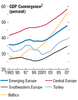Za čitavu regiju Nove Europe bez Turske (Emerging Europe) rast bi trebao usporiti sa 6.2% u prošloj na 4.7% u ovoj godini. Najveće usporavanje je u Baltičkoj regiji (primjerice Estonija je u 2007. rasla stopom 7.1%, a za ovu godinu prognozira se rast od 3%). Rast u Jugoistočnoj Europi sa 6.2% u 2007, usporava na 5.2%. Za našu regiju rast najmanje usporava.