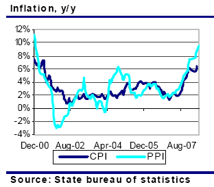 Cijene industrijskih proizvoda pri proizvođačima služe kao predkazatelj buduće stope inflacije pri potrošačima. Cijene pri proizvođačima u Lipnju (industrijski PPI) na godišnjoj razini, bile su 9.6% više. U svibnju industrijski PPI je bio viši za 8.7% na godišnjoj razini. U prerađivačkoj indistriji najbrži rast je zabilježen u sektoru koksa i naftnih derivata (41.6%) te sektoru hrane i pića (11.3%). Cijene električne energije, plina i vodoopskrbe zabilježile su isti rast već tri uzastopna mjeseca (5.9%).