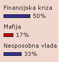 Business.hr je u ponedjeljak ukrasio svoju naslovnicu sa Polančecovim licem i izjavom da je svjetska kriza veći problem od mafije. Usitinu!? Na svojim internet stranicama postavili su anketno pitanje što je za Hrvatsku momentalno najveća opasnost? Kako je anketa završila vidite desno. Kada sam ja dao svoj glas “nesposobna Vlada” je bila iznad 40%, nešto manje od “financijska kriza”. No postepeno je kriza izglasana kao glavni problem od nešto više od 4500 ljudi.
